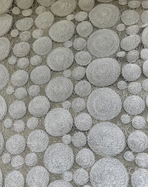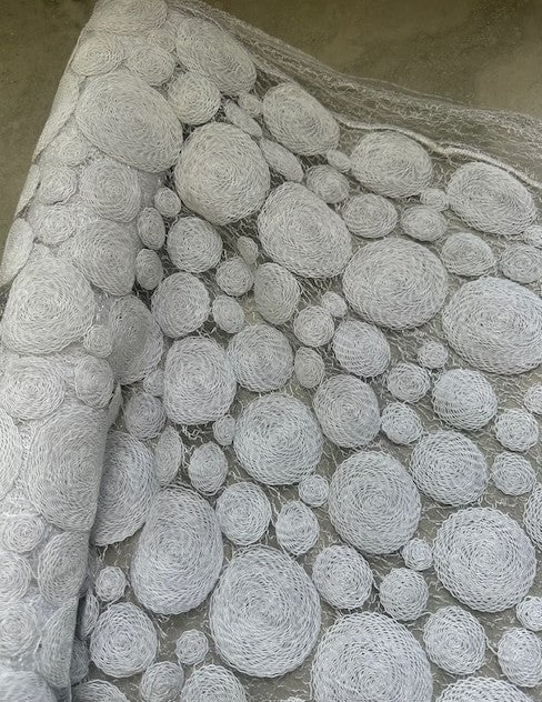 This striking fabric channels 90s nostalgia with contemporary sophistication. Its distinctive circular design make it an ideal choice for couture and luxury garment construction. The fabric's inherent quality and visual impact elevate any high-end design project.