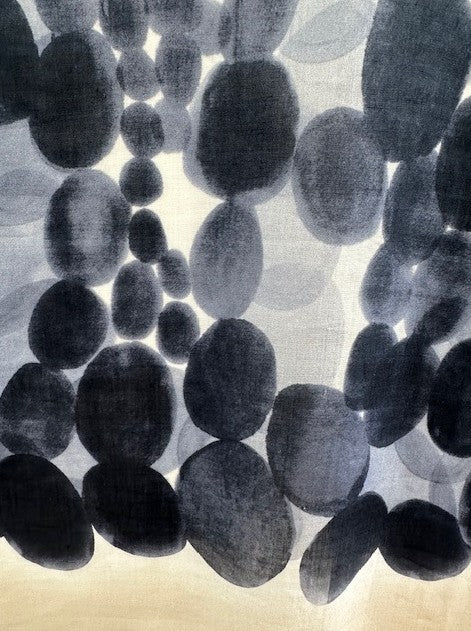 This Ramie linen blend combines the finest qualities of two fibers in a gracefully balanced weave. This soft blend combines ramie's lustrous strength with linen's timeless elegance. Light weight & breathable with an indigo blue pattern on a white & beige base.